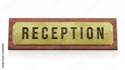 © Destina, Fototapeta premium Hotel reception sign isolated on white background. 3D illustration