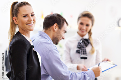 © Kalim, Fototapeta premium Hotel receptionist talking with guests