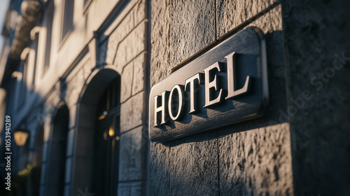 © Vika art, Fototapeta premium Hotel sign on the building.