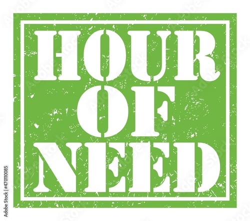 Fototapeta premium HOUR OF NEED, text written on green stamp sign