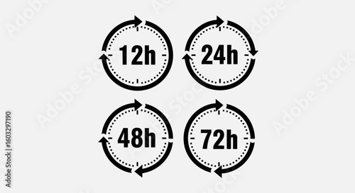 © Ironmen, Obraz premium 24 hours 12 hours 48 hours clock sign logo vector in flat style