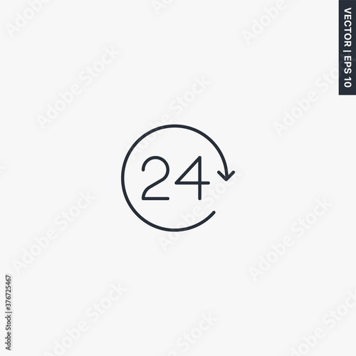 Fototapeta premium 24 hours, linear style sign for mobile concept and web design