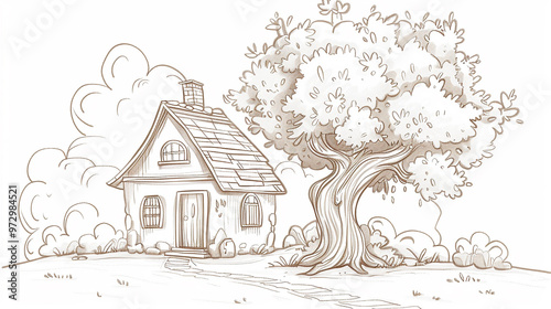© AVADA, Fototapeta premium House and barn drawing sketch architecture.