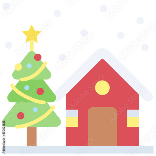 © lukpedclub, Naklejka premium House and christmas tree icon, Christmas related vector illustration