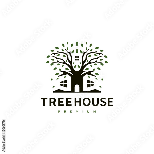 © Vexper, Fototapeta premium house and oak tree icon logo design illustration