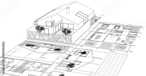 © Svjatoslav, Fototapeta premium house architectural project sketch 3d illustration