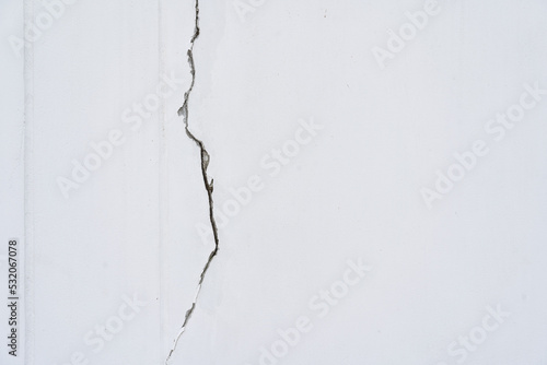 Obraz premium house broken. concrete crack. Water damage building interior. large crack white concrete wall