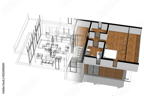 © Yurii Andreichyn, Obraz premium House building sketch architecture 3d illustration