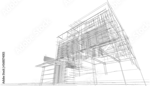 © Yurii Andreichyn, Obraz premium House concept sketch, architectural drawing 3d illustration