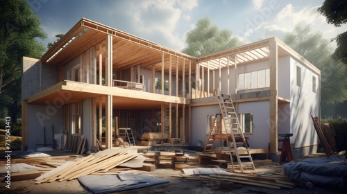 © Ирина Рычко, Obraz premium house construction building process,