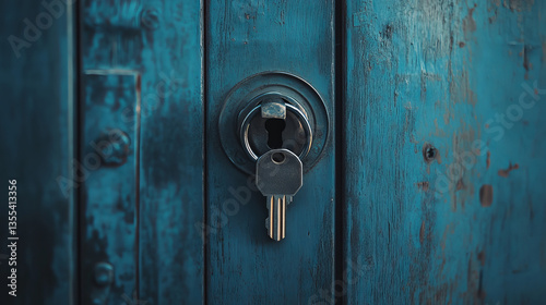 © Sahraya, Fototapeta premium House door lock access equipment icon vector safety password privacy element with key and padlock protection security keyhole vector illustration.