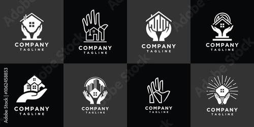 © sang, Fototapeta premium house hand vector logo design collection. Hand logo icon with house