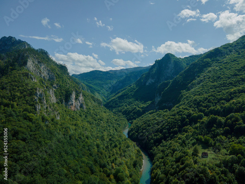 © liukovmaksym, Fototapeta premium House. House in the mountains. Montenegro. Aerial view.