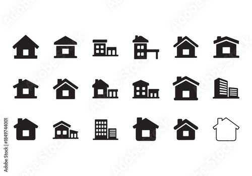 © Zamal, Fototapeta premium House Icon Silhouette Vector Set – Minimal Home Building Symbols Collection Isolated on White Background