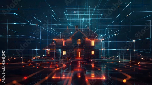 Obraz premium House in a Technology, Smart Home design, House with technology line, which...