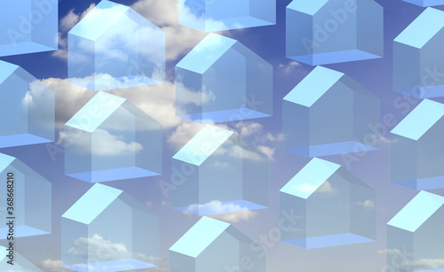 © rikstock, Fototapeta premium House, in 3D three-dimensional perspective, with transparent elements, shadows and background of sky and clouds