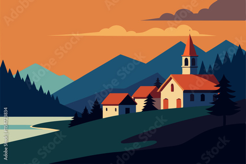 © MstAsma, Fototapeta premium house in the mountains