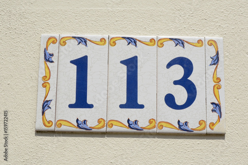 Fototapeta premium House number 113 sign in ceramic tiles