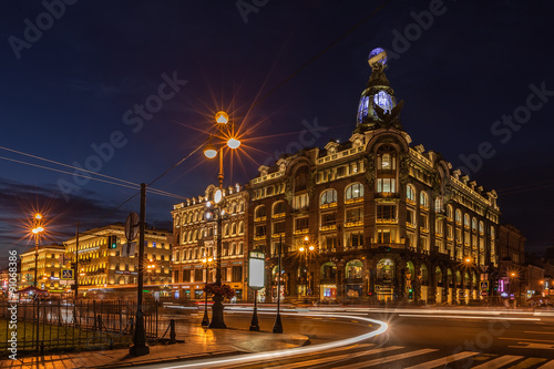 © Anna Pakutina, Naklejka premium House of Books (Singer House) on Nevsky Prospect at night illumi