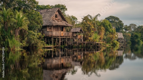 © Marco, Fototapeta premium house on the water in the Amazon