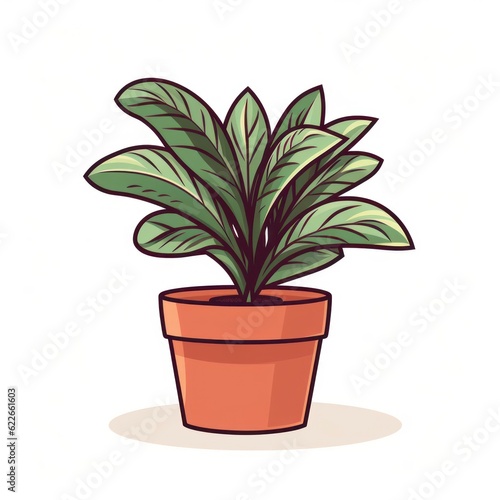 © customer solution, Obraz premium House plant in a pot, cartoon sticker design