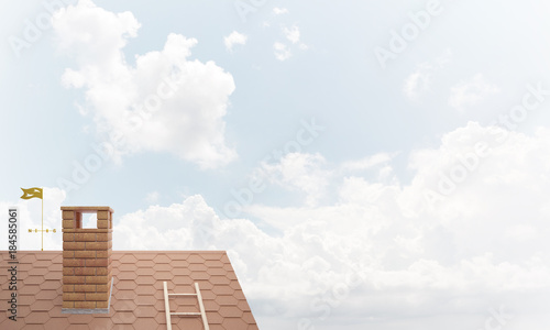 Fototapeta premium House roof as concept of suburbian real estate and construction. Mixed media