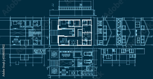 © Svjatoslav, Fototapeta premium house sketch project facades plans sections 3d illustration