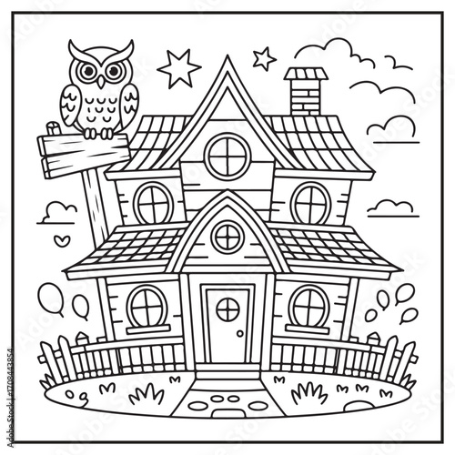 © mantu, Fototapeta premium House Spooky Coloring Pages