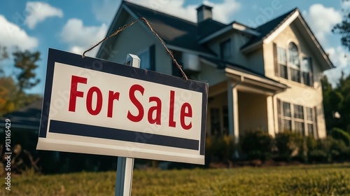 Obraz premium House with a "For Sale" sign in the front yard.