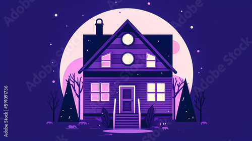 Naklejka premium House with glowing windows at night, creative illustration, generative AI.