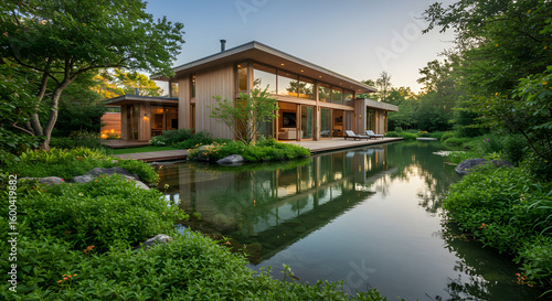 © Luciana Oluvres, Obraz premium house with natural pool