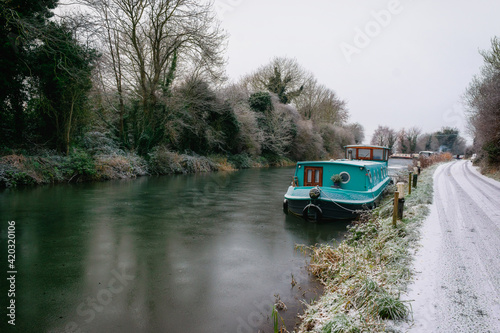 © alan, Fototapeta premium Houseboat Barge on Irish Canal at Sunrise