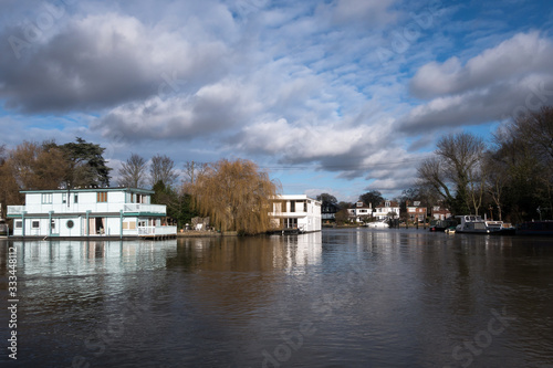 © Magnus, Obraz premium Houseboat living and mooring on River Thames
