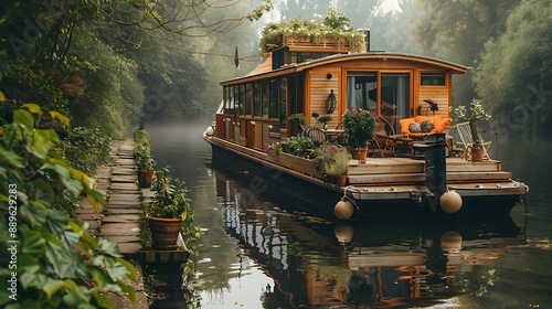 Obraz premium Houseboat on River