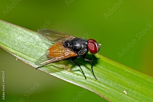 © Wong Hock Weng, Naklejka premium housefly and leaf in the gardens