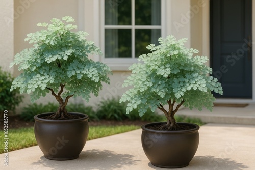 © The 2R Artificiality, Fototapeta premium Housefront potted plants flourishing successfully