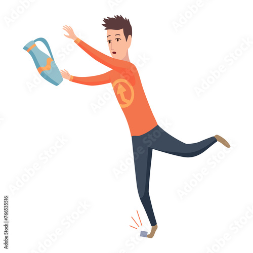 Fototapeta premium Household injurie. Isolated icon of home trouble. Warning about possible dangerous situation. People character getting civilian trauma. illustration of accident