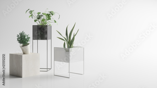 © Steamaze, Fototapeta premium Houseplants on a white background. Monstera and Sansevieria. 3d illustration