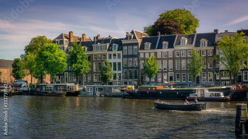 © Carlo, Naklejka premium Houses and boats on the Amstel canal.