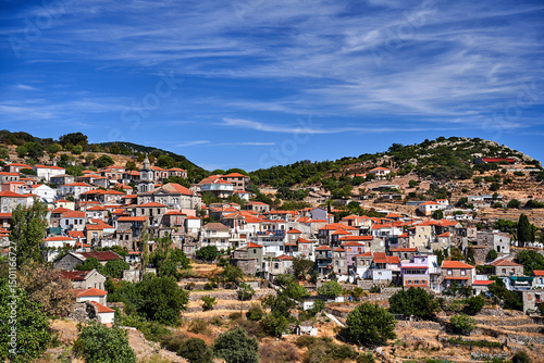 © GKor, Obraz premium houses and stone orthodox church on hillside on island of Lesbos