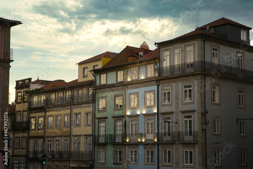 Fototapeta premium Houses in old town Porto, Portugal. At sunrise.