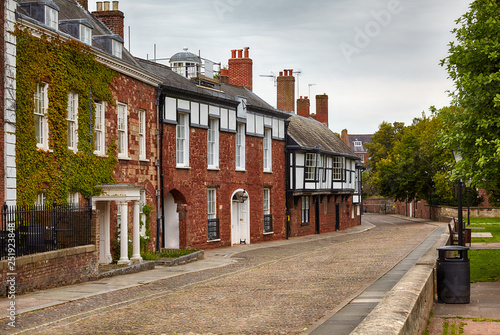 © Serg Zastavkin, Naklejka premium Houses in the area of Exeter Cathedral Close. Exeter. Devon. England