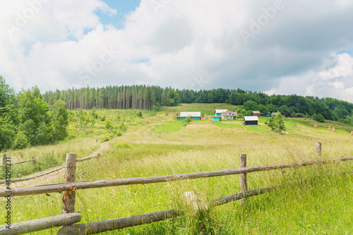 © got, Obraz premium Houses of a mountain village on a hill near the forest