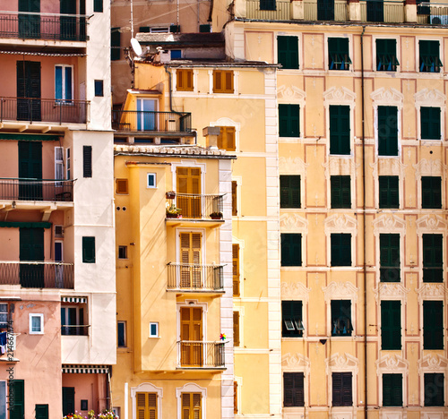 Fototapeta premium Houses of Camogli, fisher village on the Ligurian coast near Genoa, Italy