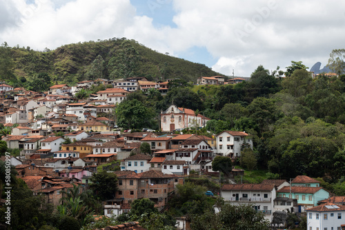 Naklejka premium Houses on the hill and a chapel in the historic town of Ouro Preto, Minas...