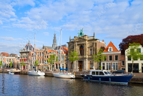 © neirfy, Obraz premium houses over canal in old Haarlem, Holland