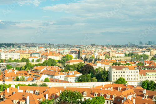 Obraz premium Houses with traditional red roofs in Prague Old Town Square in the Czech...