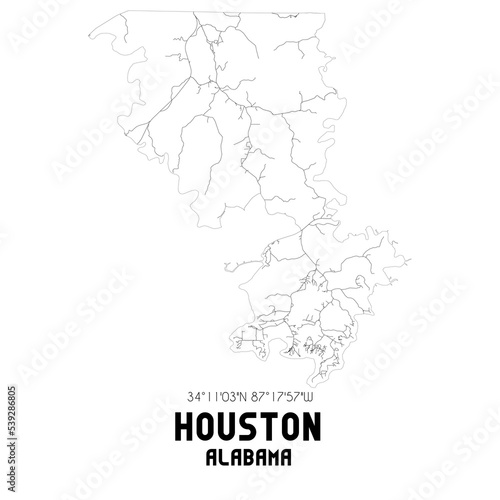 © Rezona, Obraz premium Houston Alabama. US street map with black and white lines.