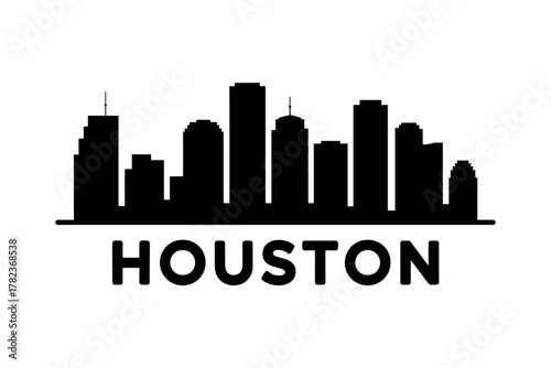 © Alishba_Photography, Fototapeta premium Houston city skyline silhouette illustration against a white background showcasing urban landscape and architecture