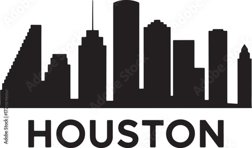© Nur, Fototapeta premium Houston Cityscape Silhouette Vector Illustration with Modern Buildings and Urban Design